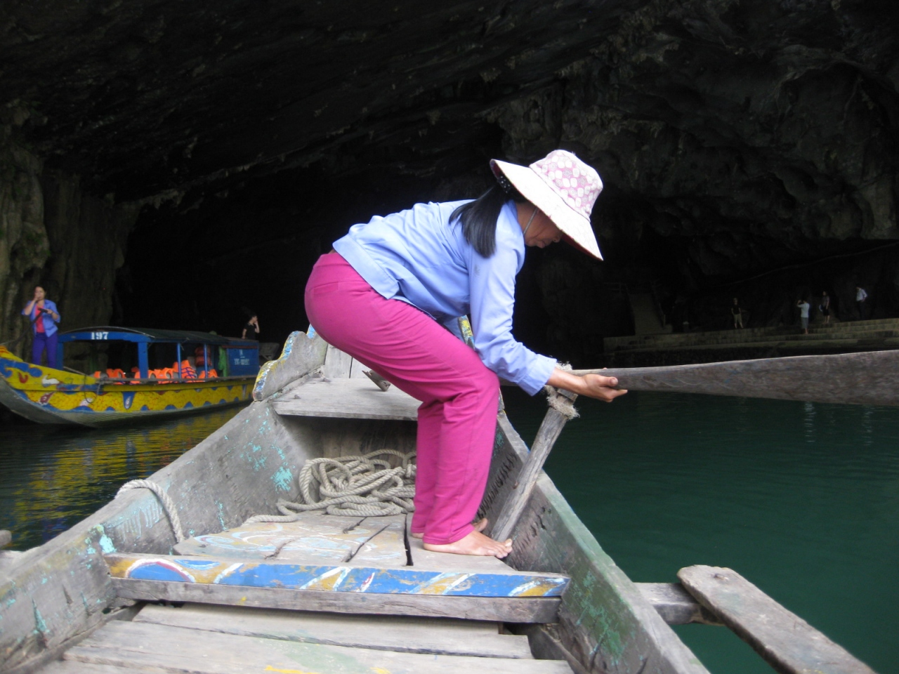 小船は10人乗りくらいの小さな船で、女性の船頭さんと男性の船頭さんが一人ずつ、