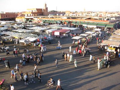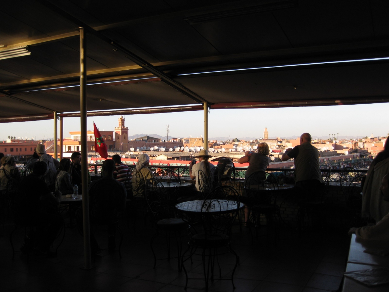 ジャマ・エル・フナ広場も一望できるし、大道芸人の様子もよくわかる。