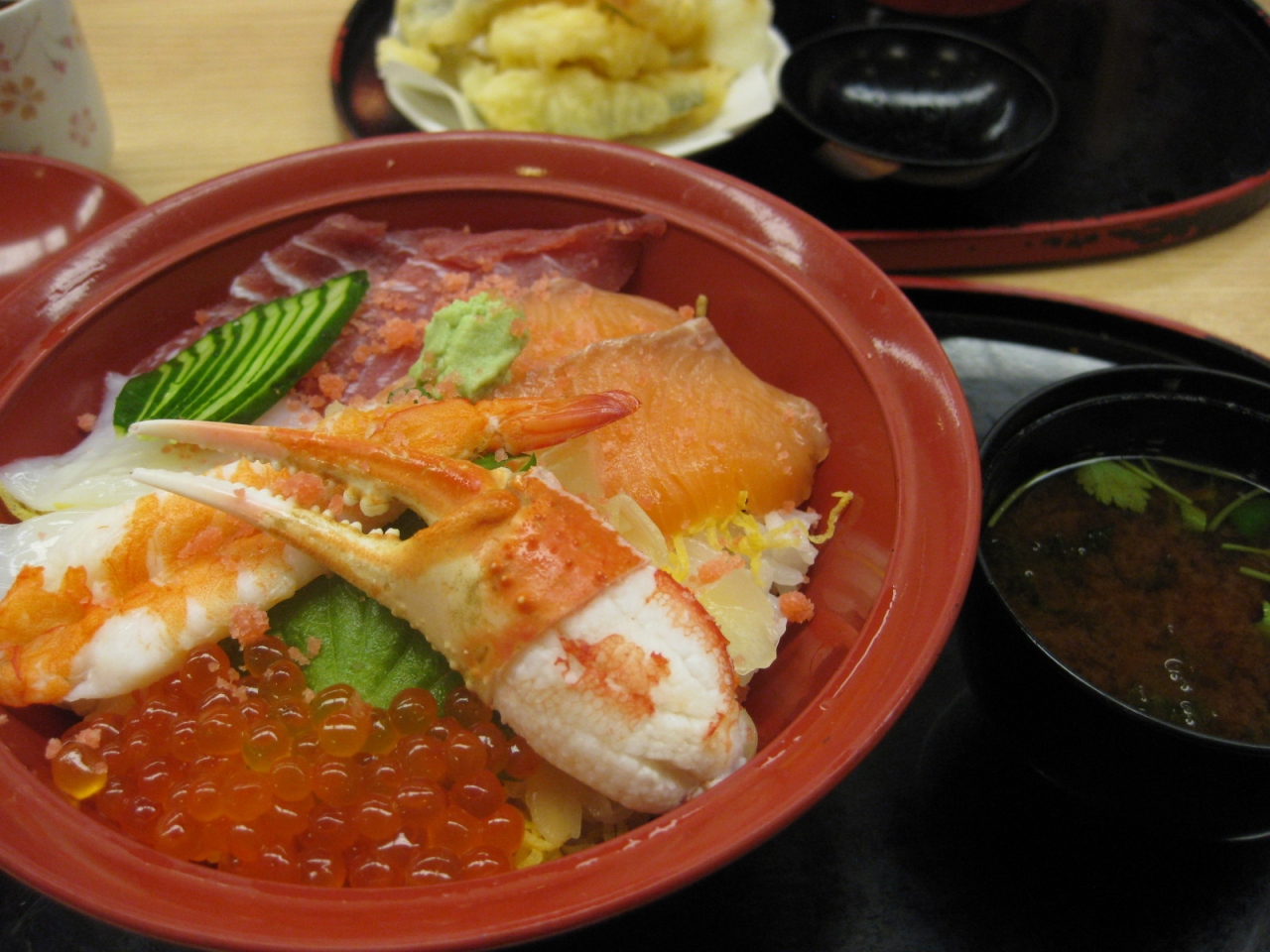マグロ、サーモン、イカ、イクラ、カニの爪などが乗っかっていて、シャリも美味しい。