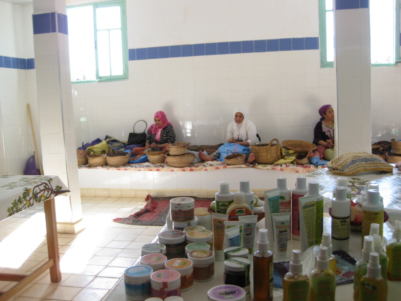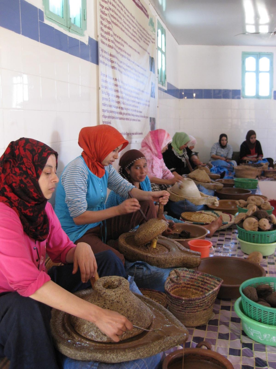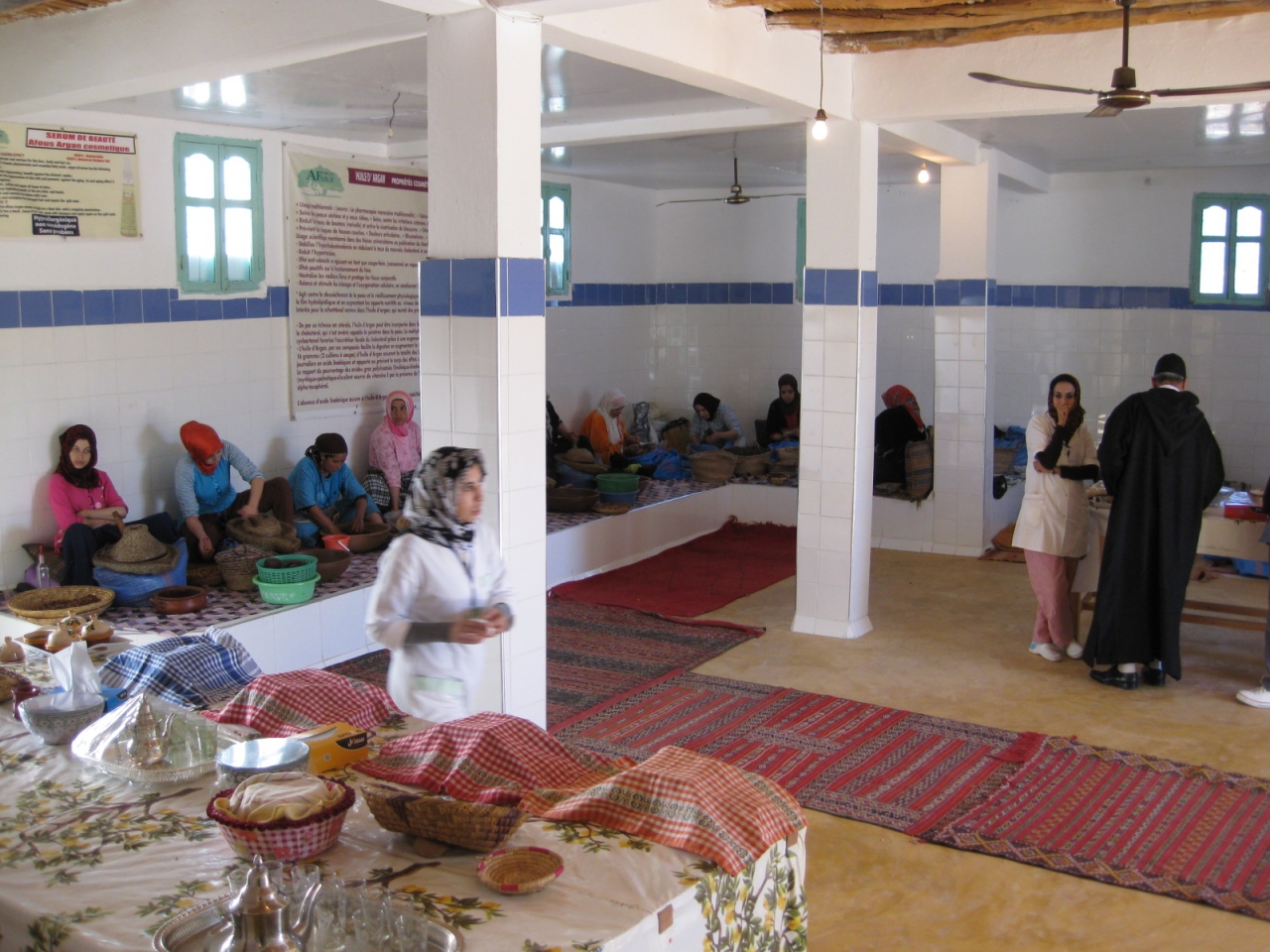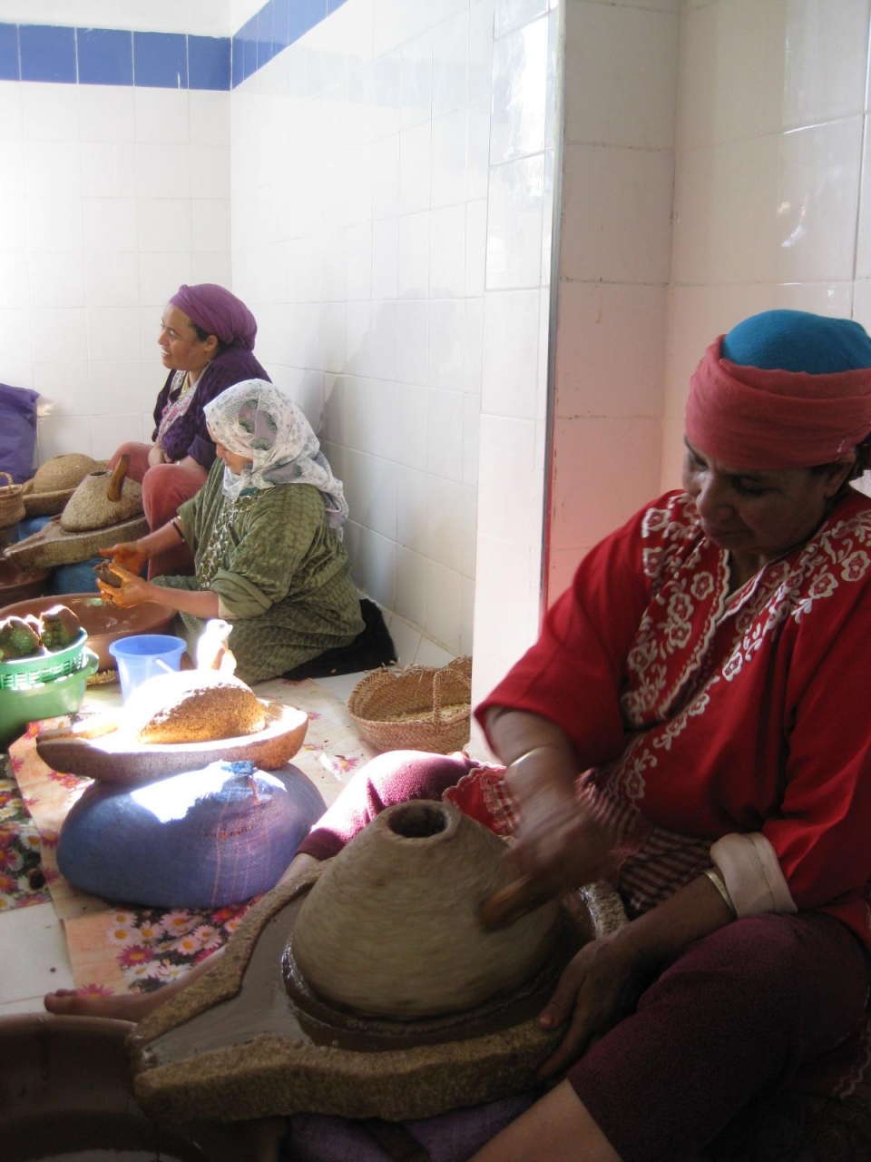 アルガンの実がオイルになるまでの工程を見学することができます。