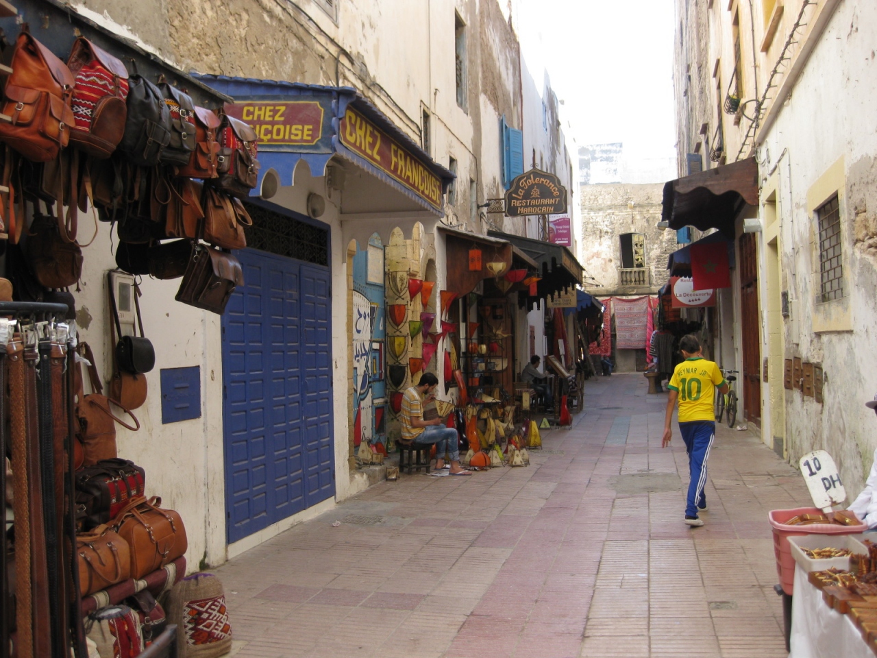 入り組んだ路地には、いろいろなモロッコ工芸品や雑貨のお店がひしめき合っています。