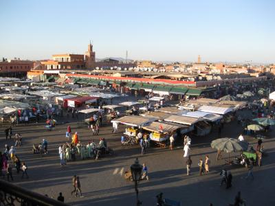 ジャマ・エル・フナ広場にたくさんの屋台が出ている。