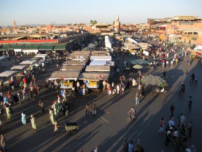 ジャマ・エル・フナ広場はマラケシュの中心、一番賑やかな場所です。
