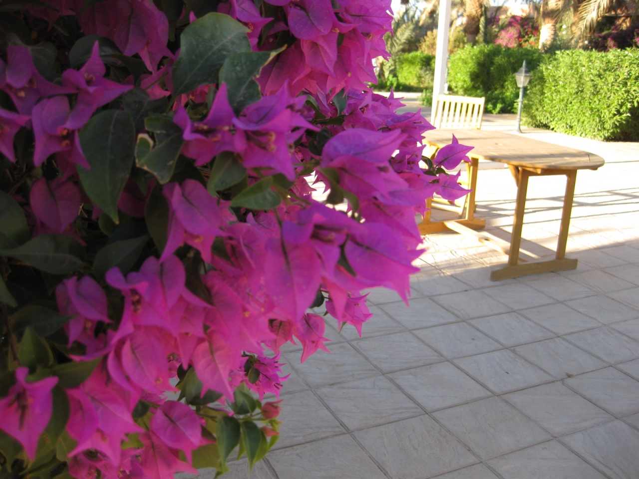 プールサイドもきれいに整備されていて、所々にブーゲンビリアの花が。