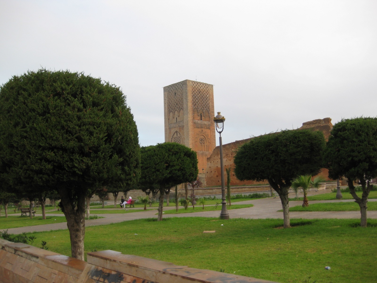 モロッコの首都ラバトにある未完の尖塔(ミナレット)。