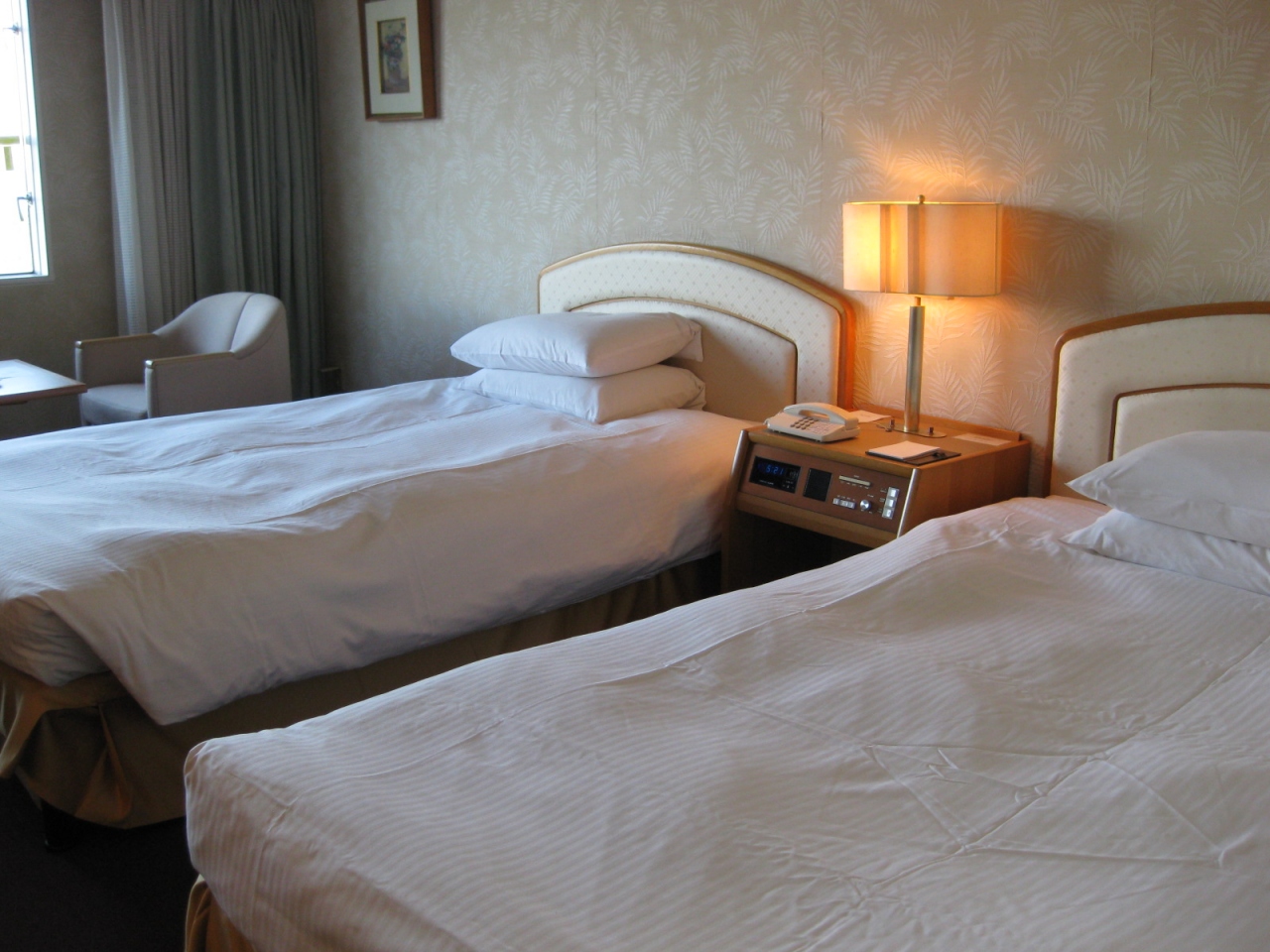 客室は、広くセミダブルベッドが2つのツインルーム。