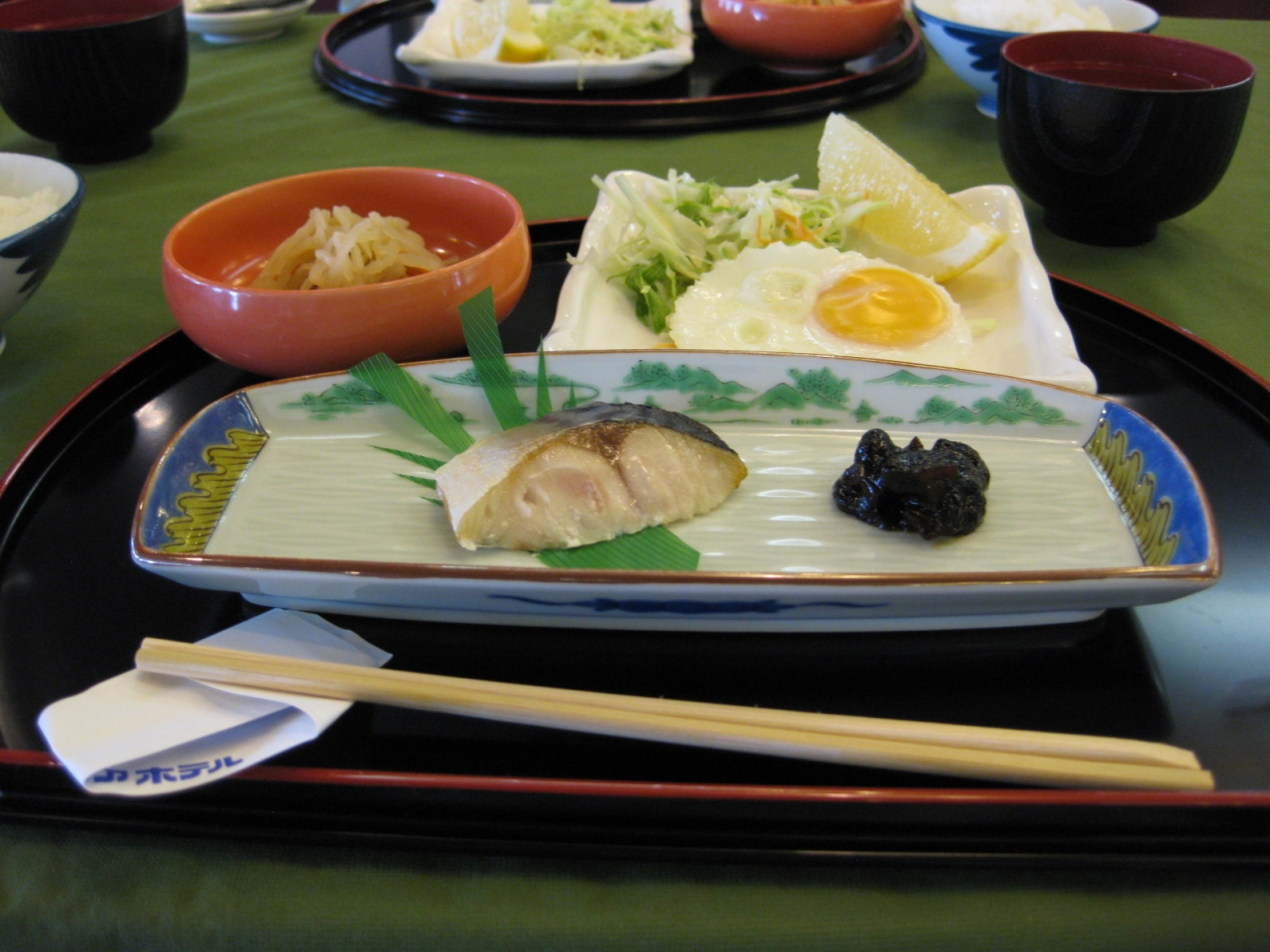いわゆる、目玉焼きや焼き魚などいわゆる旅館の朝ごはんです。