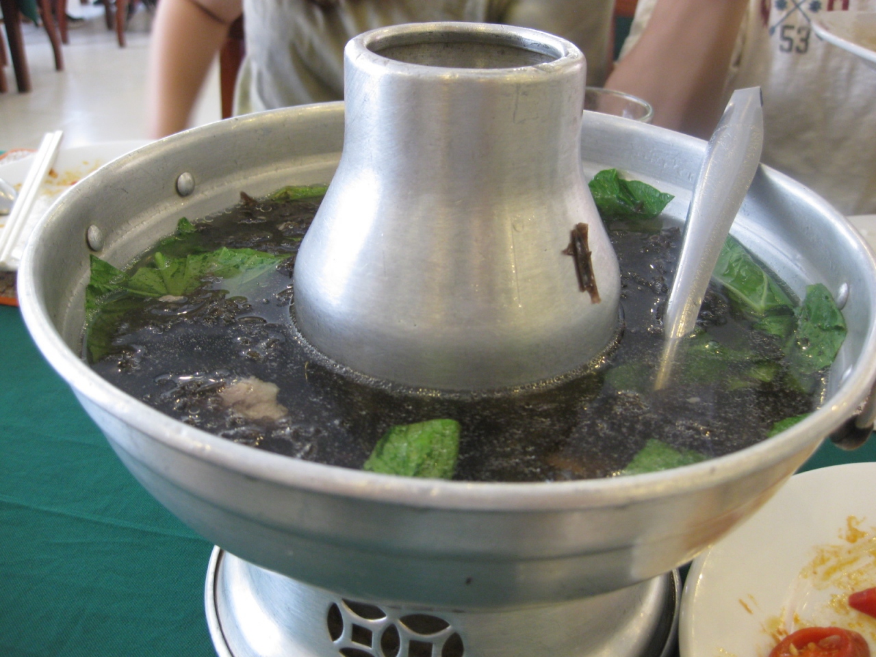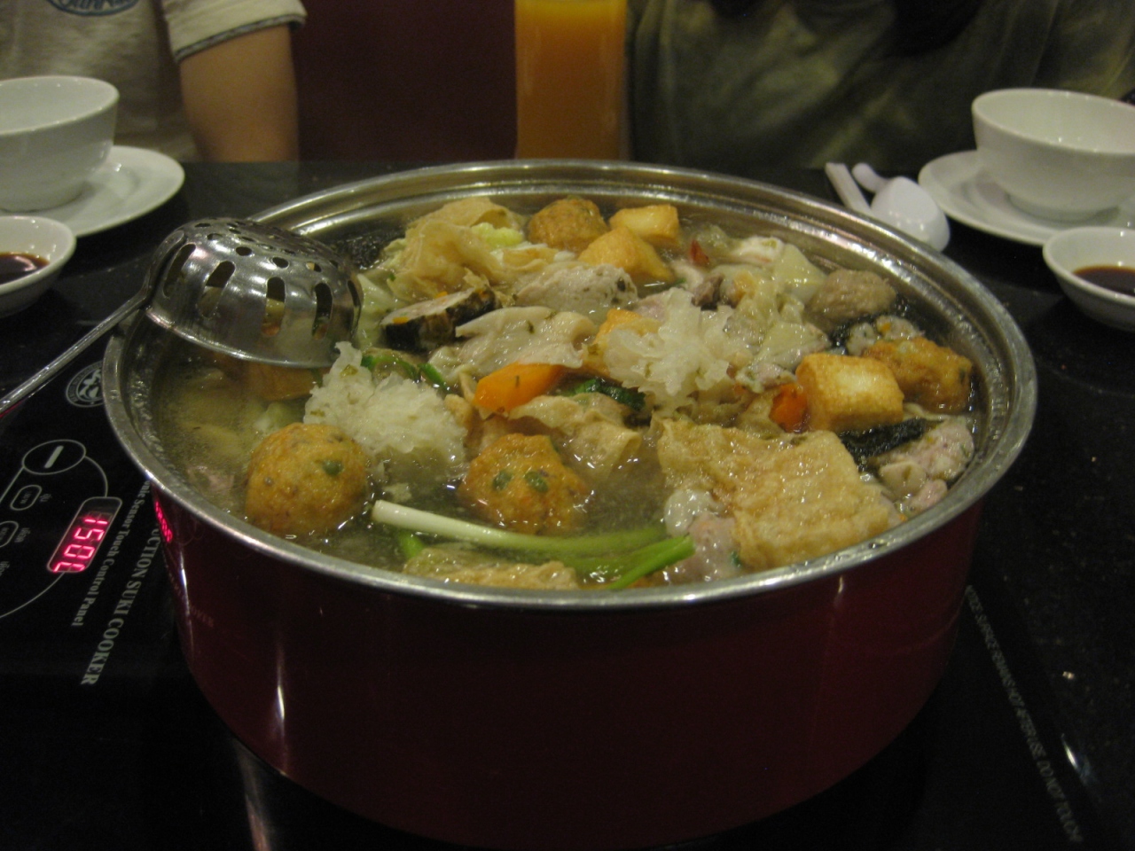 日本の鍋のようなもので、野菜や魚介類、練り物などを入れて、