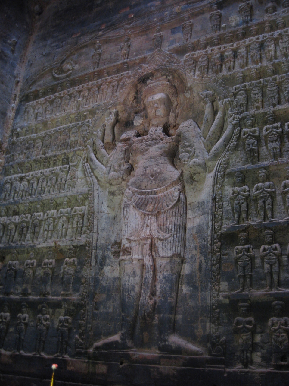 祠堂内部には「三界をまたぐヴィシュヌ」や