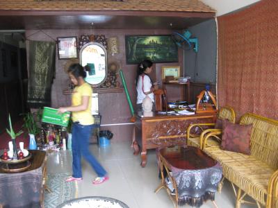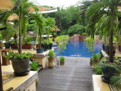 (クメール様式で木をふんだんに使用しており、調度品・家具