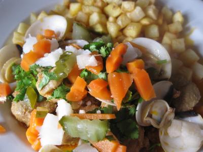 (豚肉とアサリを白ワインとニンニク、香草とともに炒めたもの)