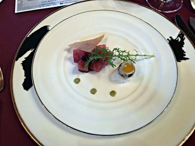 夕食はフレンチのフルコース。しっかりしたメニューの組み立てで美味しくいただけました。