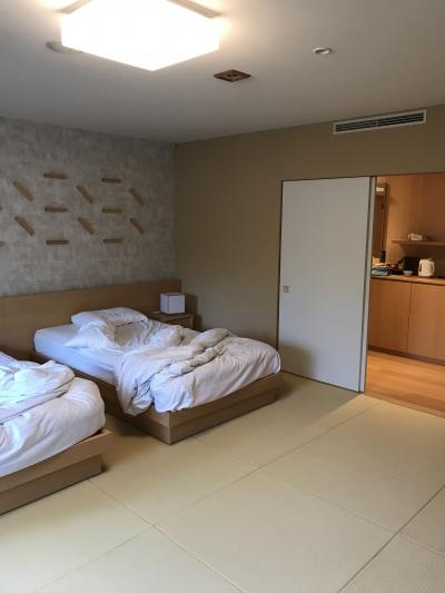 ホテルは安藤忠雄らしいコンクリートの打ちっぱなしの建物です。しかしそこには冷たさも硬さも感じられない不思議な空間がありました。