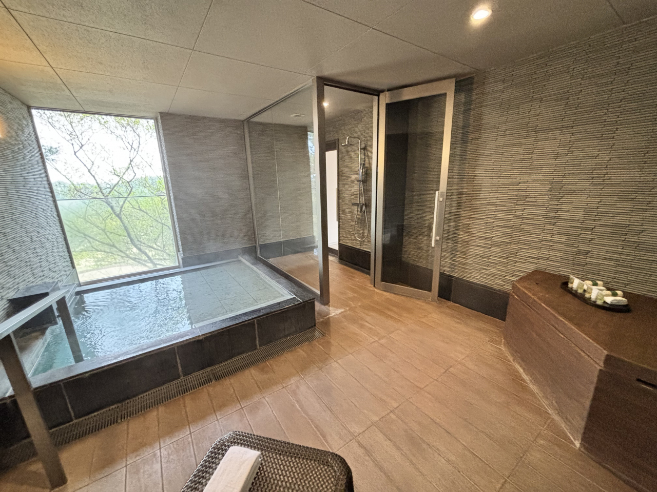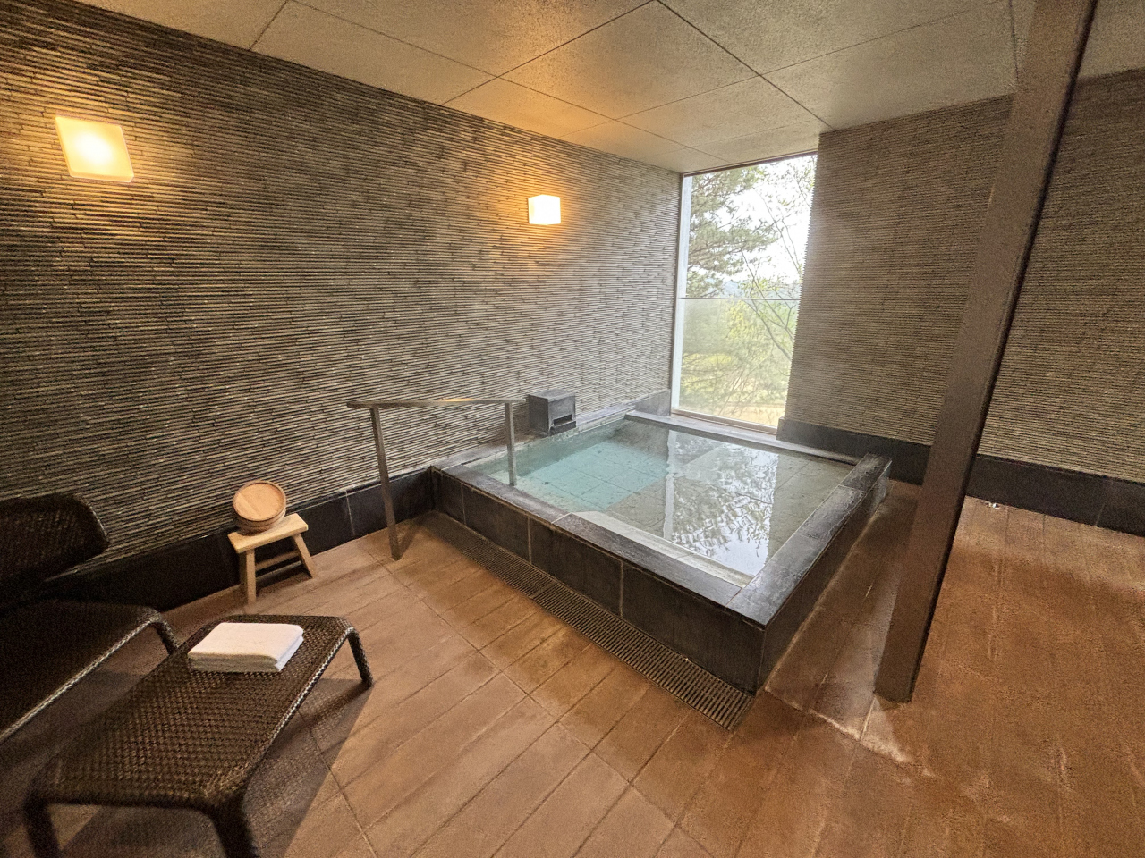 ホテルの温泉には露天は無いのですが、程よい広さ木々の景色が楽しめ落ち着けて入っていて癒されます。