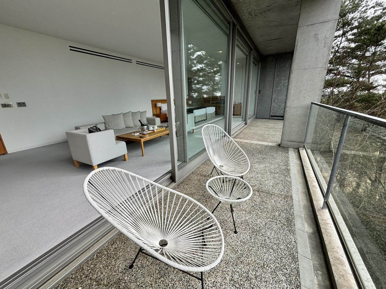 部屋は一つの階に一部屋のみ。エレベーターを降りると自分の部屋しかなく、部屋の中は全てにおいて広い造り。しかも目の前に木々が広がっり何とも心豊かな気持ちになれます。