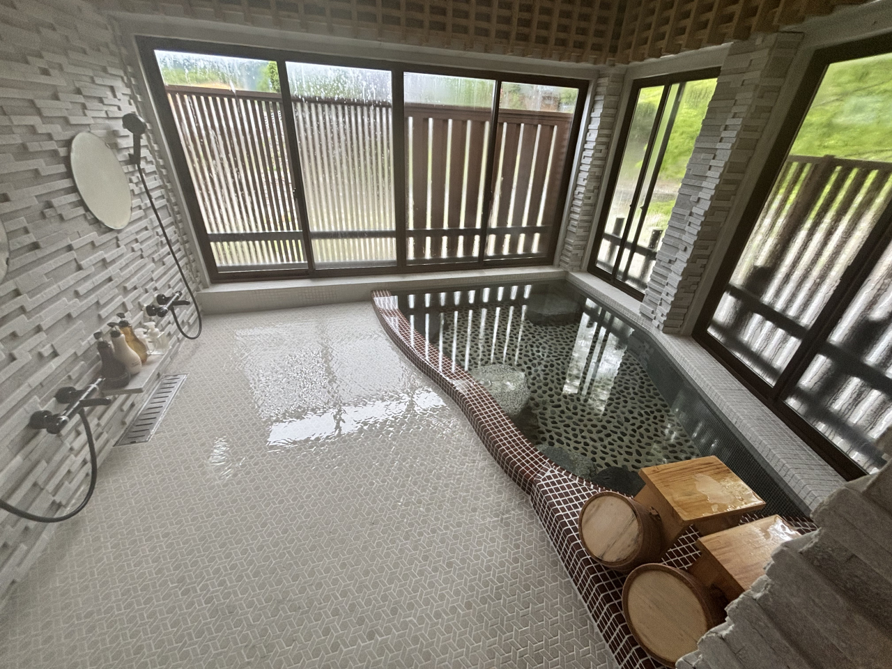 男女入れ替え制の大浴場もどちらにもジャグジーがついていて快適です。特に二階の岩風呂は広く開放感がありよかった。