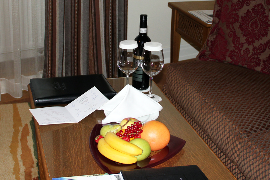 ルレエシャトーメンバーの予約だった為ウェルカム特典でウォッカとチョコレートそして果物が置かれてありました。