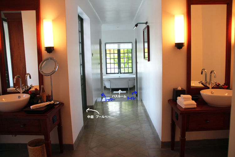 ベッドルームからリビングルームまではその中ほどにあるバスルームを通るか、もしくは長い廊下を歩いていくか。かなり不便です。