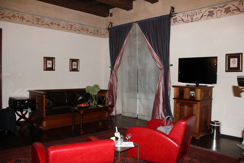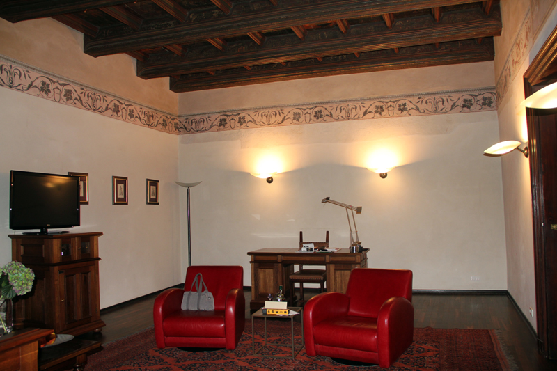 フレスコ壁画が残った広いスィートの部屋に宿泊。
