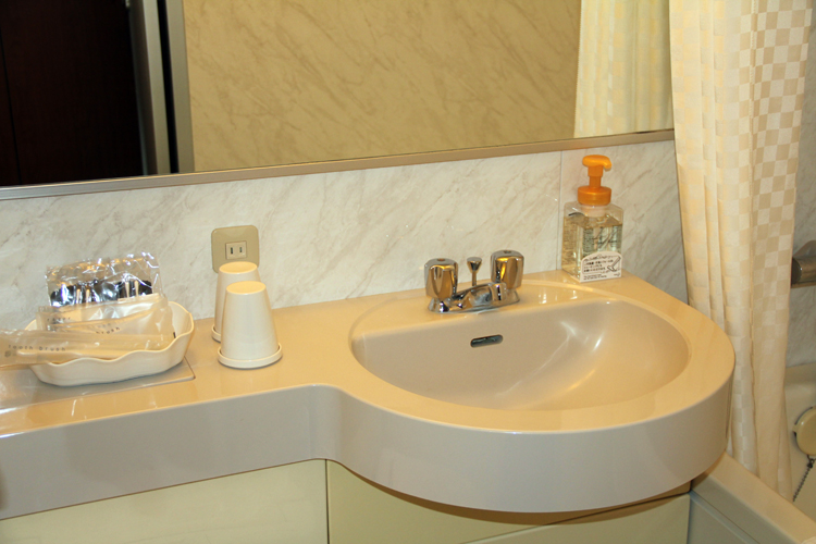 恐らく揺れの為水関係の何かが傷んだのでしょう。水が漏れている部分に張り紙をしてチェックアウト時にその事を伝えておきました。