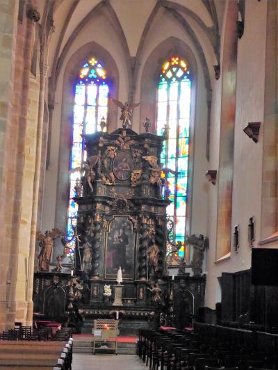 聖ミクラーシュ教会は、さすがのカテドラル。主祭壇をはじめ、ステンドグラス等々趣きを感じさせるものが目白押し。