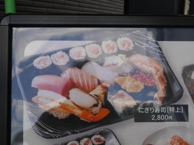 食事処のお寿司が「うに、鮑、イクラ他付」で信じられないお値段ですが、、先を急ぐ私は又もやおにぎりを買う。- 旅行時期