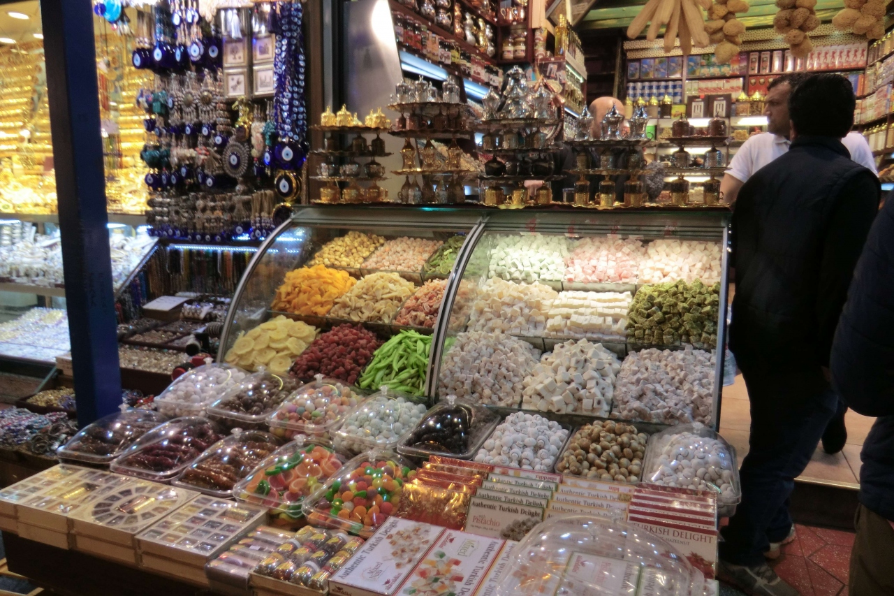 イェニジャーミィを観光しようと周辺を回っていたとき、偶然みつけた市場です。後々までここがエジプシャンバザールとわかりませんでした。トルコならでの商品が並んでいて、購買の衝動にかられましたが、これから約二か月の旅行、じっと見るだけに我慢です。