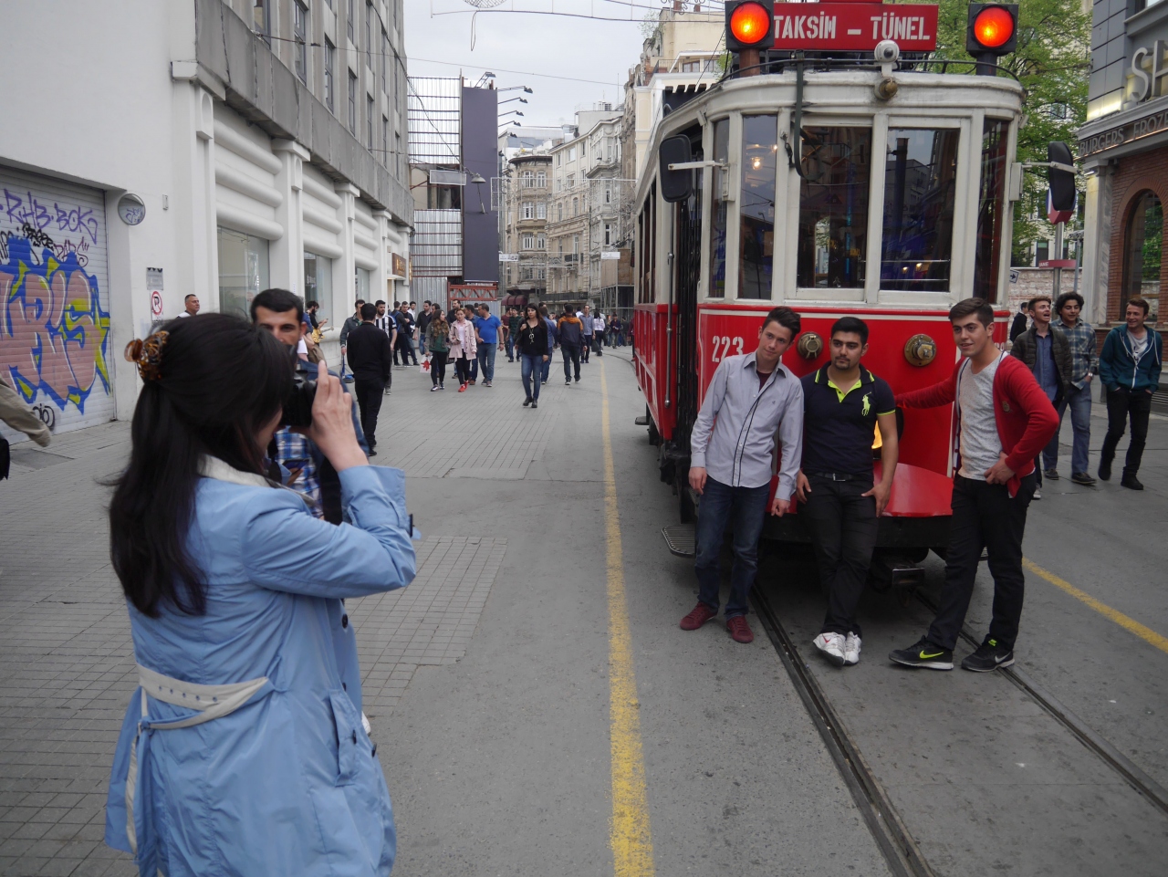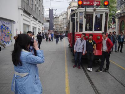 イスティクラール通りの散策は歩くだけでなく、このトラムを利用することもとても楽しい思い出となります。歩行者天国のこの通り、多くの人であふれていて徐行しながらしか、運行は難しいみたいです。別に急いでいるために利用したトラムでないので、ゆっくりと動いてくれることは、イスティクラール通りを見学する私にとってとても好都合でした。