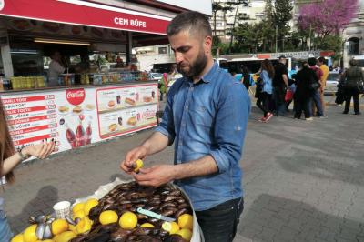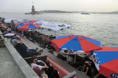 ボスポラス海峡に沈む夕日を楽しみにユスキュダルから海沿いの道を散策しました。途中途中の露店を冷やかしながらの散策、とても楽しいものです。乙女の塔に着いたときはまだ日が高く、川辺の座席でチャイを飲みながら(ビールは無理そうと諦めていました。)と思っていましたが、生憎の満席。ということで道路を挟んだレストラン、やはり満席。きれいな夕日は望めなさそうだったので、しばらくの見学のあと、帰路に着くことなりました。