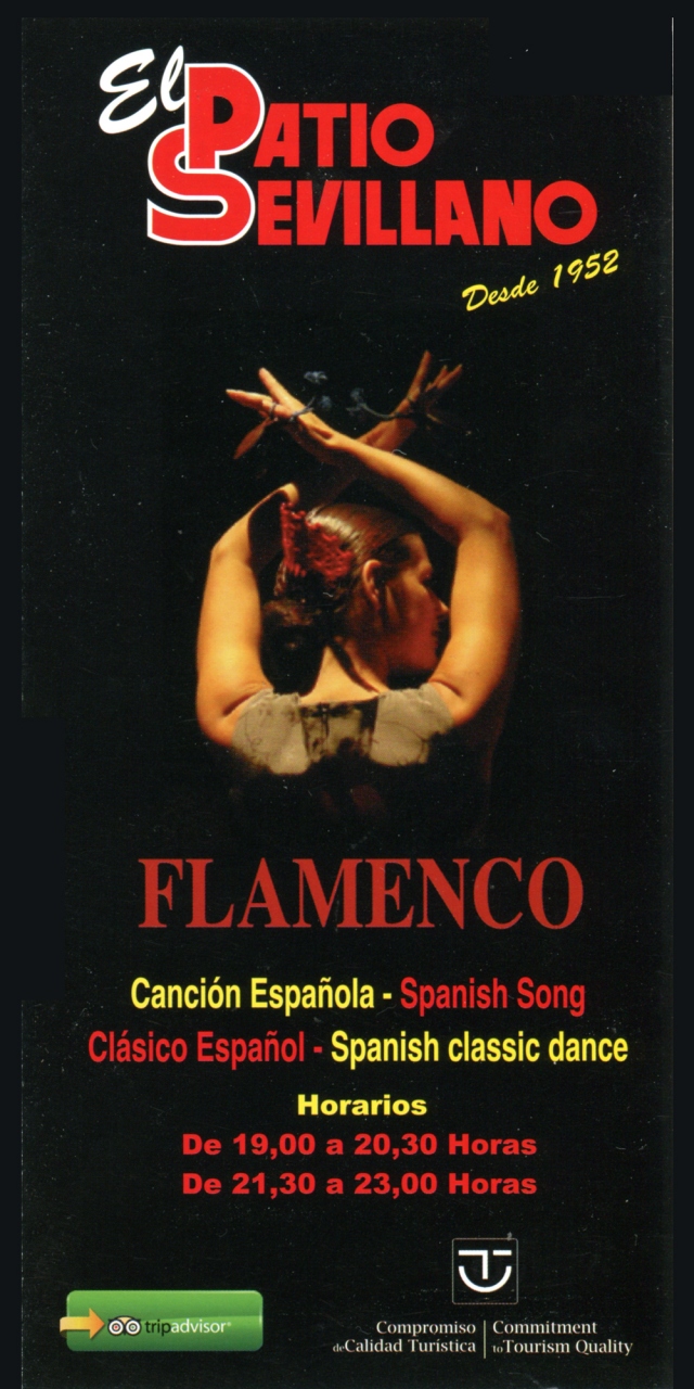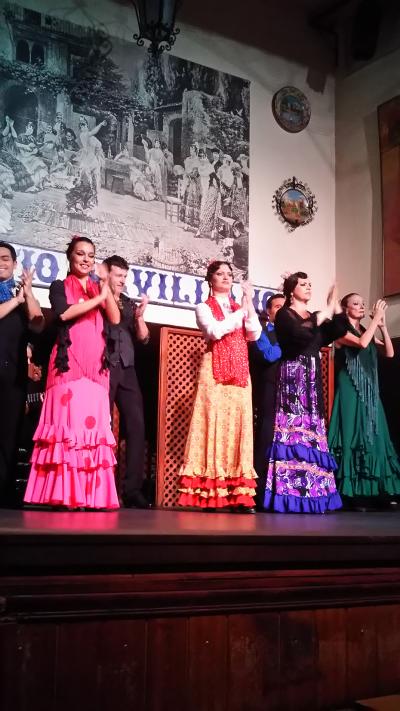 初めてのフラメンコショー。会場の雰囲気はとてもよく、当然、フラメンコにも大いに期待しました。ここに来る前に、偶然にもバルでフラメンコを踊っていた方を間近で見て来たため、その臨場感には、少し期待外れの感も。