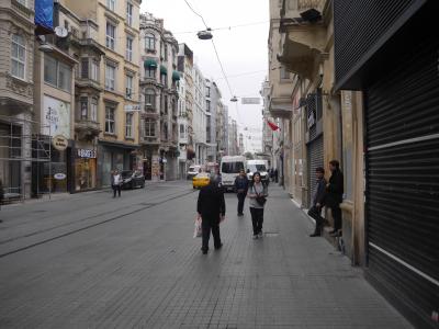 人通りは多いけど、歩行者天国になっていて、気を付けるのはときどき通過するトラムと警察車両。落ち着いてウインドショッピングなどを楽しめます。タクシム広場からはやや下り坂、いつのまにかガラダ塔に着いてしまいます。トラムに乗って眺めるのもとても楽しいです。