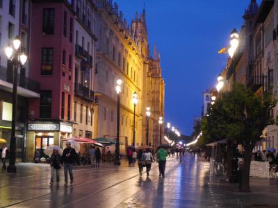 セビリアの旧市街の観光で、この通りには何度も出かけました。トラムの走る通りにはカテドラルや趣のある建物が、その風景をとてもロマンチックにしています。