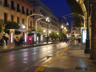 セビリア3日目、それも最後の夜にやっと出かけました。それもバスターミナルに行くための市電の乗り場を確認と、ここを観光したいという気持ちもないままだったので、とてももったいないことをしました。