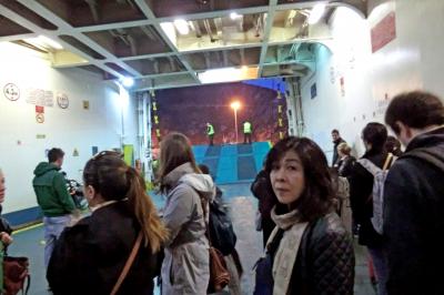 エーゲ海の長距離フェリーは、どれも大型で、エスカレーターもあり、船内の探索だけでも結構楽しいものです。