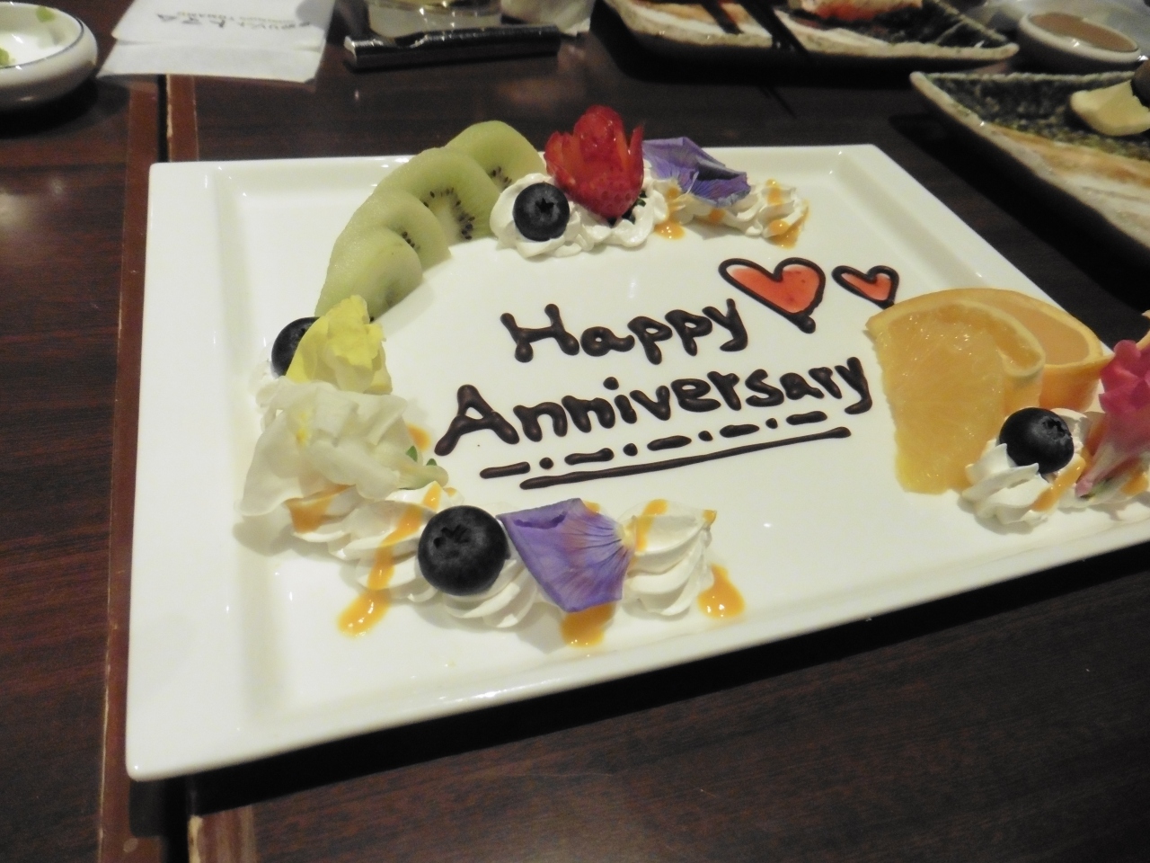 明日の挙式のことを伝えると、お祝いのプレートをいただいたり、お店のスタッフが何かと気を使っていただきました。