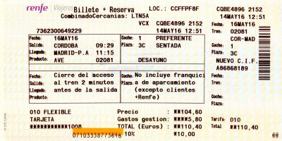 コルドバの駅で切符を買いましたが、希望の便は1等しか空席がないとのこと、しぶしぶの購入となりました。