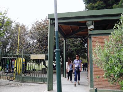 Zappeion 国際展示場から向かい、アドリアノスの門あたりから入場できるものと、行き過ぎてしまい、もう一度もどるこことなりました。トラムの走っている通り沿いに入口はあります。アドリアノスの門から中を望むことはできますが、柵があって入りません。ここに入口があったほうがよいとかんじます。