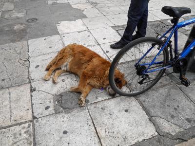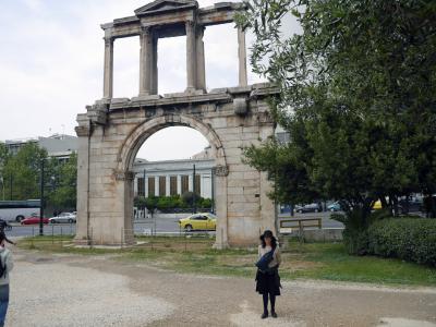 プラガ地区から大通りを渡ったゼウス神殿の前にあります。まるでゼウス神殿の入口と誤解してまう位置に立っています。わずかの敷地にこの門だけがあり、ほとんどの観光客は写真だけをとって立ち去っていきます。ただ犬だけがたぶん一日中ここでゆっくりとたたずんでいるようです。