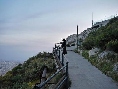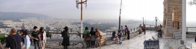 フィロパポスの丘に治安情報がでていたので、リカヴィトスに行くこととしました。コロナキ地区をゆっくりとのぼって、ケーブルカーで山頂の丘に着きました。山頂には教会を囲むように360度のパロラマが開け、アテネ市内から遠くピレルスまで望めます。カフェでゆっくりと夕日を鑑賞しようとしていたのですが、こんなにもギリシャの日没が遅いとは思っていませんでしたので、結局待ちきれず、ならばと、ハイキングコースを下ることとしました。下山したころにサンペンデットとなりましたが、下りながらも夕暮れのアテネを堪能できました。ただ、ライトアップしたパルテノン神殿は方角的にみることはできません。夕暮れ時の山道、他に誰もいませんでしたが、なんら不安を感じることはありませんでした。