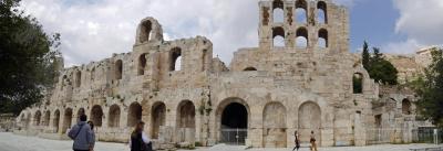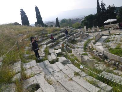 この音楽堂には計3回足を運びました。最初はアクロポリス見学の折、続いて2回目はアクロポリスのまわりを一周したとき、そして最後は夜のアテネを散策したときです。ライトアップされた音楽堂は、観光客も少なく、静かな中でちょっと離れたところに腰かけてボーッとみていたのですが、とても楽しい思い出となりました。治安も全く問題なくお奨めです。ただ、その先のアクロポリス入口の方はさすがに暗い道なので、行くのはやめましたが。