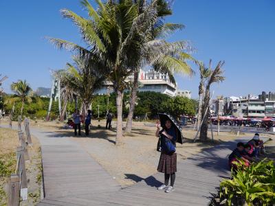 旗津のフェリーの駅から廟前路を真っ直ぐに通り抜けると、そこは海岸公園になっています。公園では私たちのよく知っている日本の演歌を歌っている人や、公園前の多くの露店で、食べている人などの様子は、まるで何かのお祭りのようです。