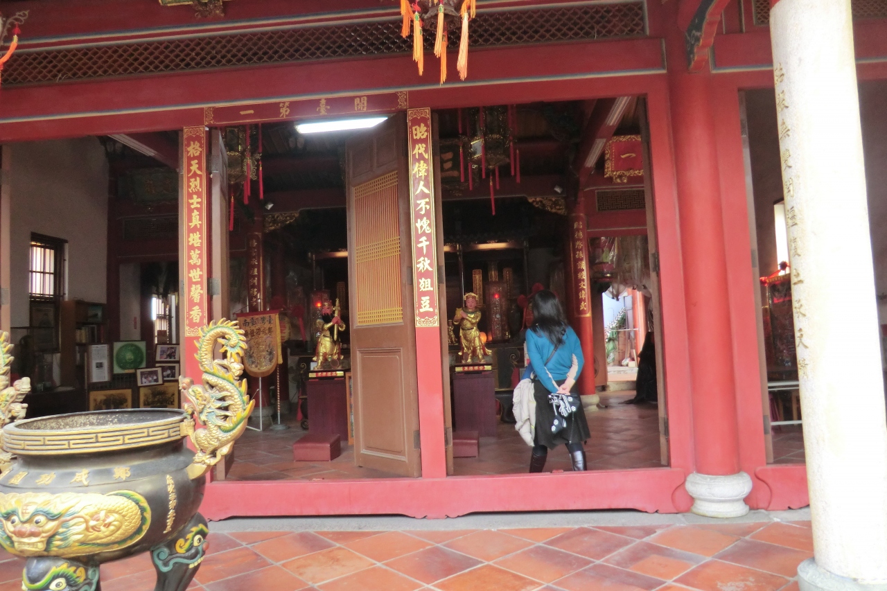 孔子廟から赤嵌楼に向かう途中で、鄭成功祖廟の案内があり立ち寄りました。台北では全く鄭成功に関する場所はなかったのですが、台南ではその名のついた大学や道路などの他、銅像などをよく見かけました。