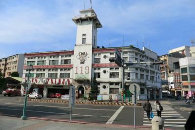 日本統治時代の建物は、台南の中心地にある民生緑園というロータリーの周りに多くあります。この消防署もその一つで、このロータリーに道が集まっている都合で、何回もここに戻ってくる羽目になり、信号待ちの間に何回もこの塔を眺めることになっていました。