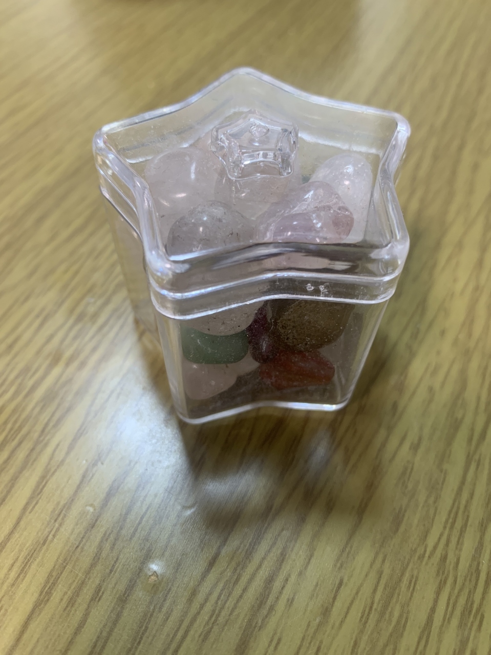 「地底王国美川ムーバレー」の坑道出口直ぐのところで「砂金採り体験」と「天然石掘り体験」ができます。「砂金掘り体験」は子供には難しそうだと感じたので「天然石掘り体験」をしました。可愛らしい箱に石を詰めていきます。砂場に石がたくさん入っているので、「見つける」というよりは「選ぶ」んですが、子供は楽しめたようです。