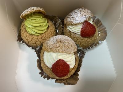 イオンモール川口前川店にあるお店です。パン屋ですが、ケーキやシュークリームも売っています。フードコートで食事をした後、甘いものが食べたくなりこちらによりました。遅い時期だったのでもうケーキが残り少なくて、迷ってシュークリームを買いました。クリームたっぷり、変わり種のピスタチオクリームのシュークリームも美味しかったです。