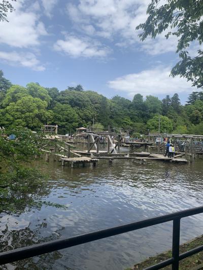 清水公園にあるフィールドアスレチックは冒険コース、チャレンジコース、水上コース、幼児専用エリアがあります。水上コースは水濡れ覚悟のコースで人気があり行列になっていました。絶妙に難しいアスレチックは子供も大人も楽しめます。