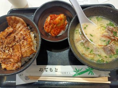 ららぽーと東京ベイのフードコートにあるお店です。カルビ丼と白湯麺のハーフ&ハーフを夫が注文して食べていました。一つの量が少し小ぶりになっているとはいえ、丼と麺のダブルは満足感があったみたいです。味も美味しかったそうです。
