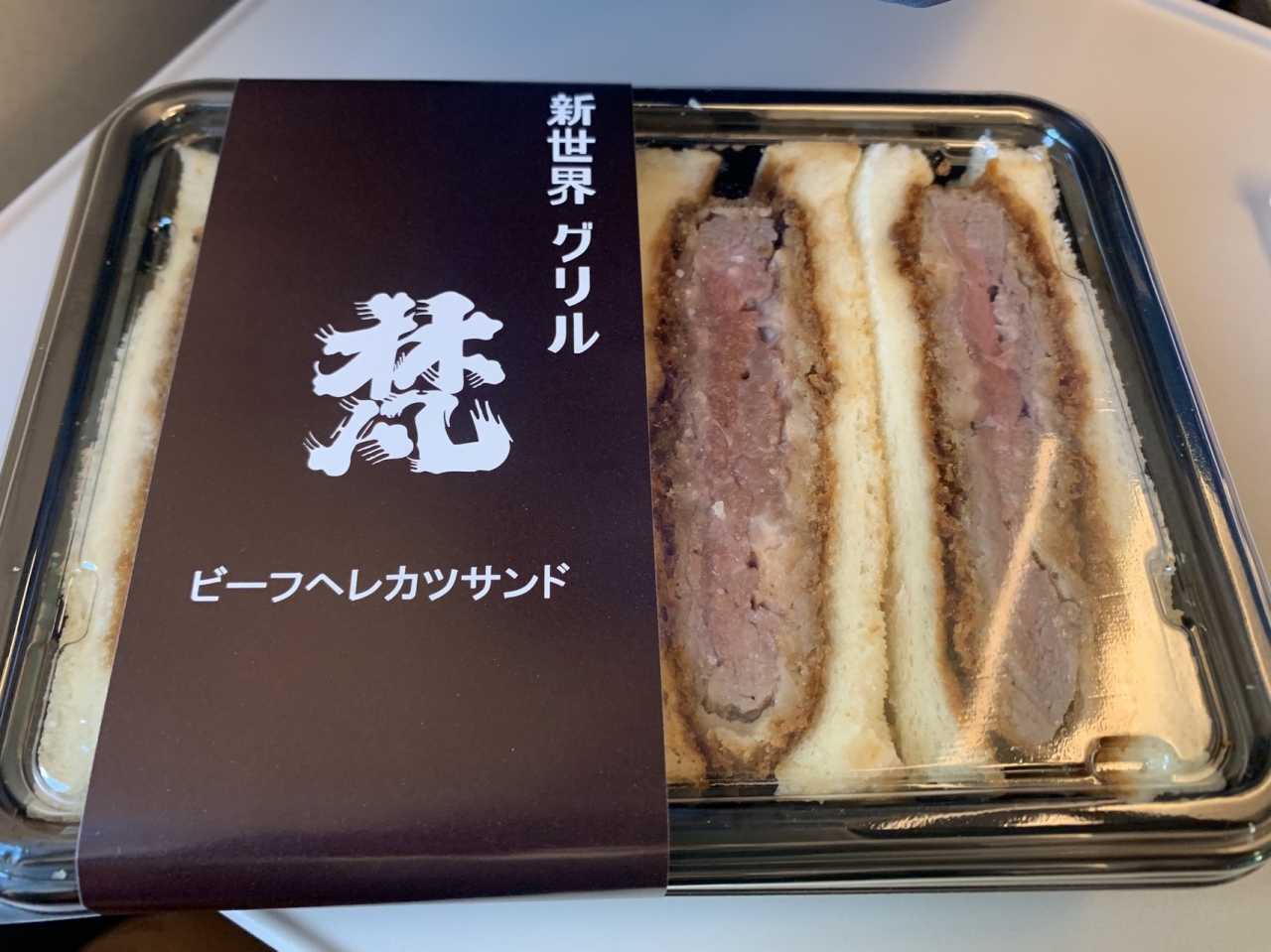 子供が新幹線の中で食べるお昼ご飯をこちらで買いました。食べたいもの自分で選ばせたら「牛ヒレカツサンド」が良いとのこと(⌒-⌒; )なかなか肉肉しいチョイスでしたが、小さな子どもでも美味しく食べられました。