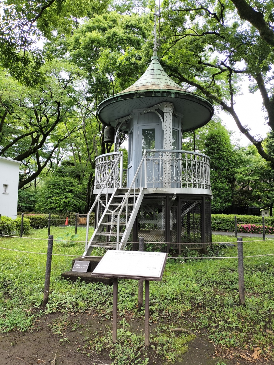 江戸東京たてもの園にあります。台東区東上野五丁目に1925年に建てられました。望楼とは火の見櫓のことをいいます。三脚四層式外廊型で本来は23.6メートルの高さがありましたが、その上部部分がこちらに展示されています。