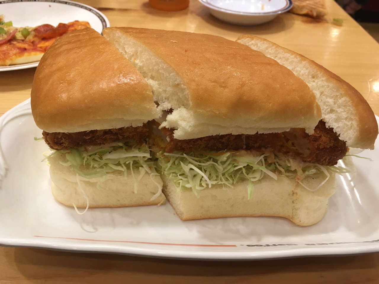 ららぽーと新三郷でショッピングをして夕食を食べるために来店しました。コメダ珈琲はコーヒーだけでなく食事もできて良いです。ピザと海老カツサンドを大人二人と幼児一人でわけて食べました。と言っても夫は海老が苦手なので、ビッグサイズのエビカツサンドはほぼ私が頑張って食べました。